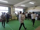 犬・猫のポーズは子ども達が大好き。大人はスクワットや肩凝り・腰痛に効く動きを取り入れてもらい、日頃の疲れ解消に頑張りました。